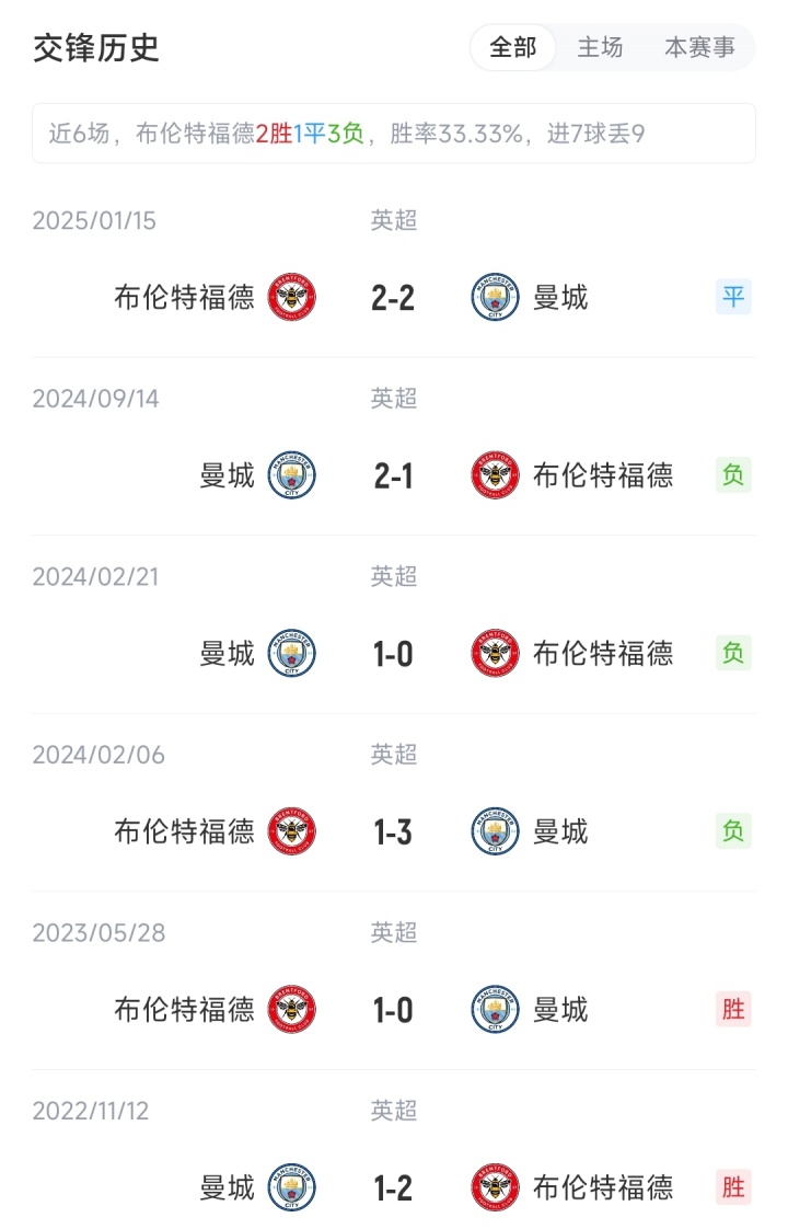 界限赛前,曼城3胜1平2负积10分,排行英超积分榜第8;布伦特福德2胜1平3负积7分,排行英超积分榜第14。