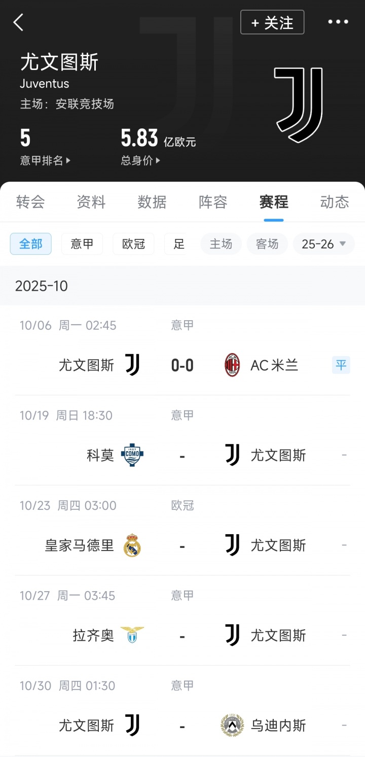 5连平再“喜提”3连客😣尤文10月中下旬赛程:科莫皇马蓝鹰乌鸡