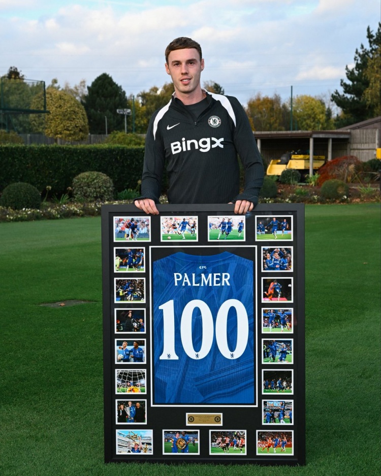 俱乐部百次出场,切尔西为帕尔默等五名球员颁发缅想礼物