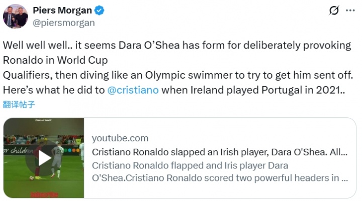 对此,名嘴/C罗好友摩根再度在个东谈主社媒转发有关报谈声援C罗:“正确的判定。他其时是在招架别东谈主拉扯他的球衣。”