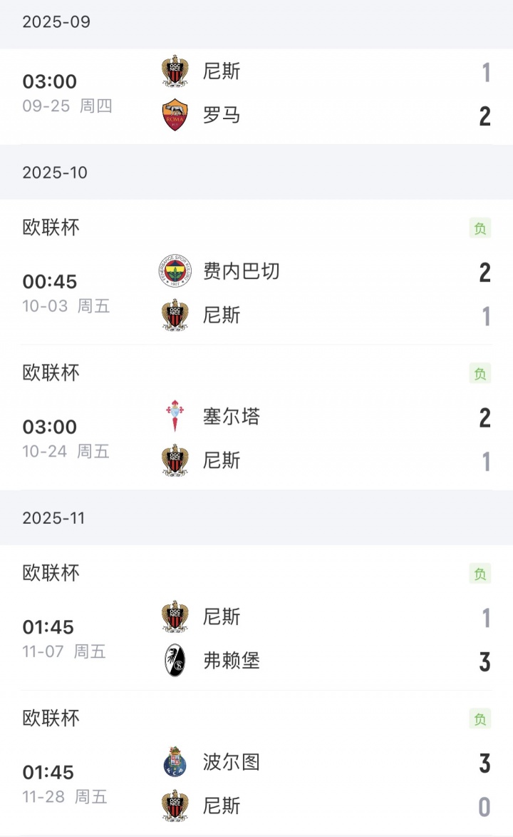 11月28日讯 本周欧战汗漫,尼斯成为法甲7支参赛球队中唯独输球球队,尼斯欧协联0-3惨败波尔图,5战全败垫底。